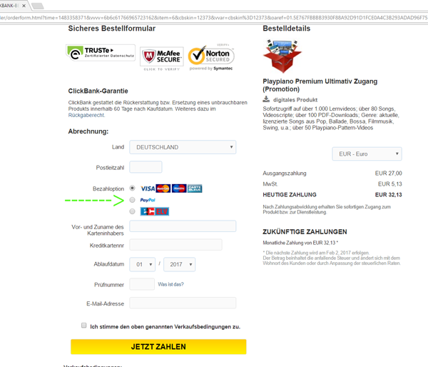 Schritt 2: Bezahlmethode wählen aus PayPal, Kreditkarte, Lastschrift und Kaufvorgang SSL-gesichert abschließen